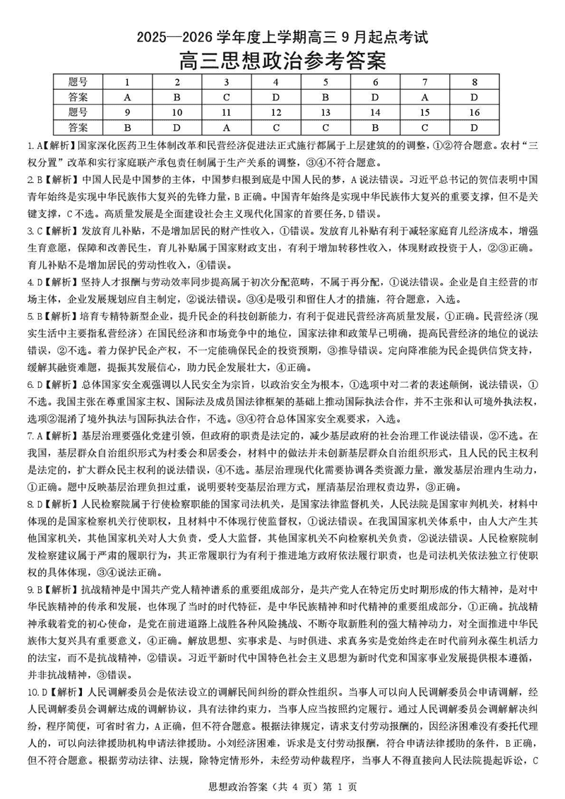 湖北楚天协作体2025-2026学年高三上9月起点政治考试已于近日开考,为方便考生考后及时查看考试情况,查漏补缺、弥补不足,本文整理了试题答案解析相关信息!