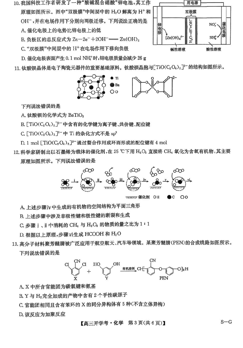 河南九师联盟2026届高三上学期9月联考化学试题及答案