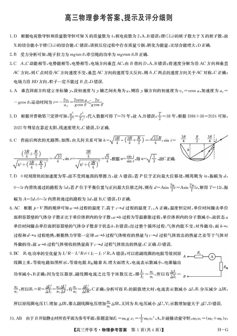 河南九师联盟2026届高三上学期9月联考物理试题及答案
