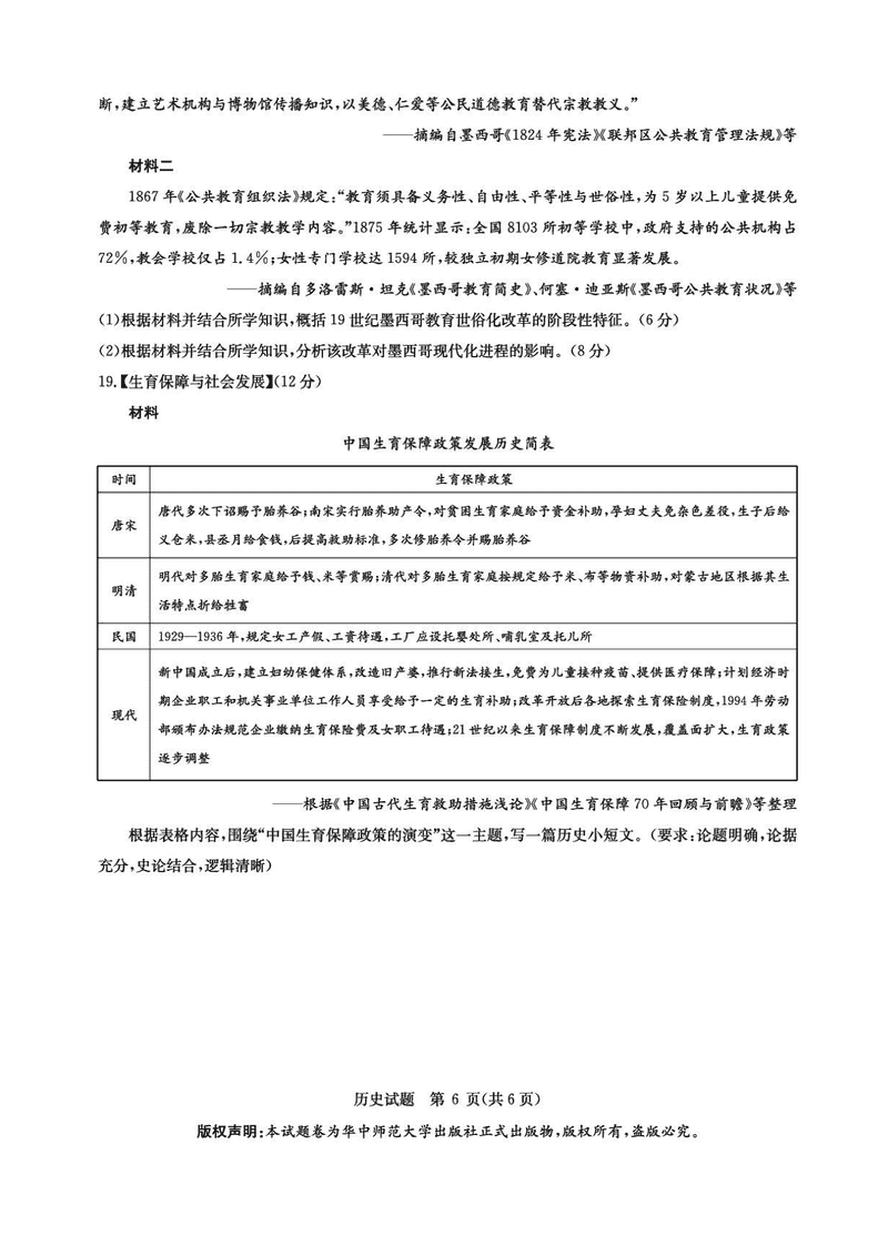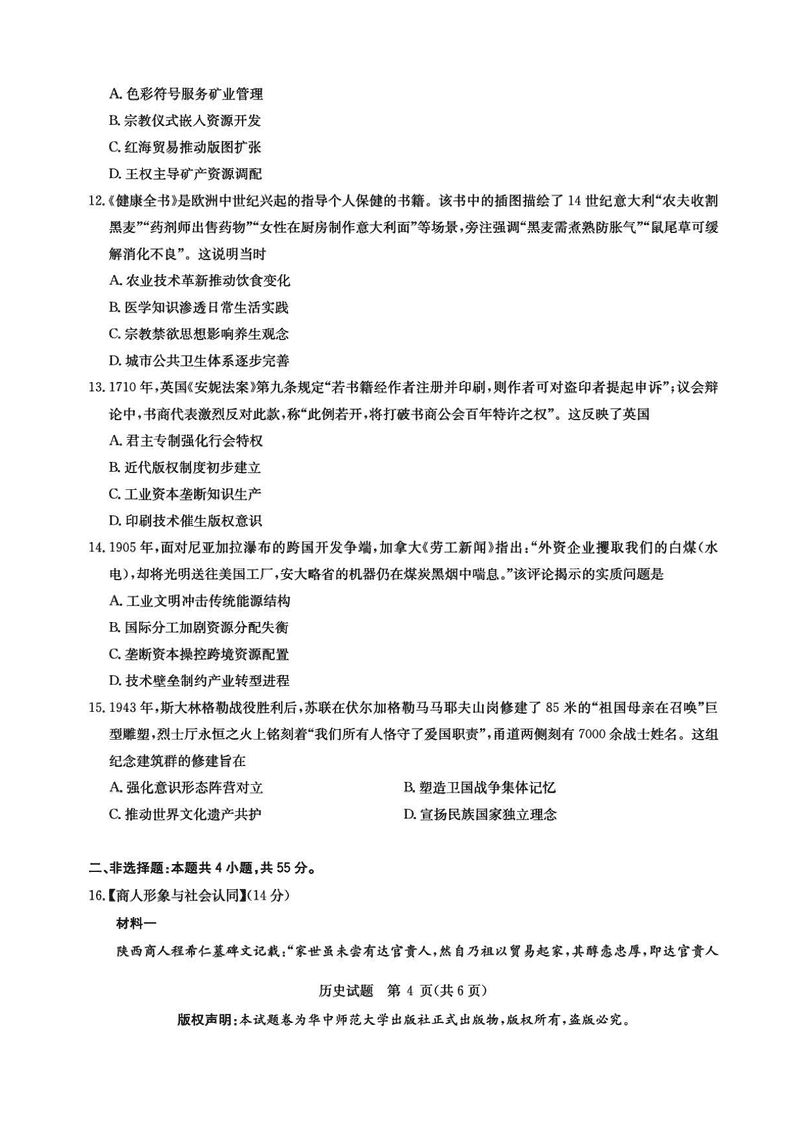 华大新高考联盟2026届高三9月教学质量测评历史试题及答案
