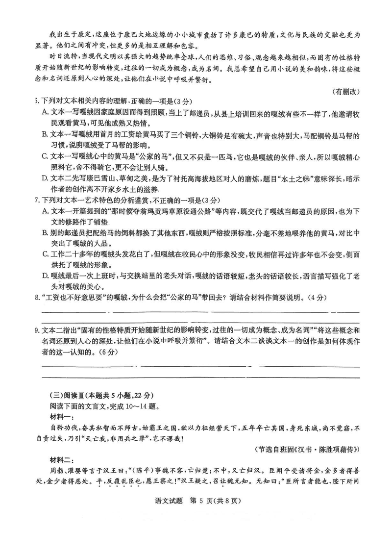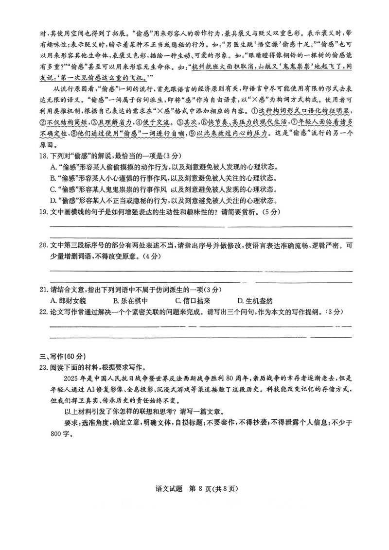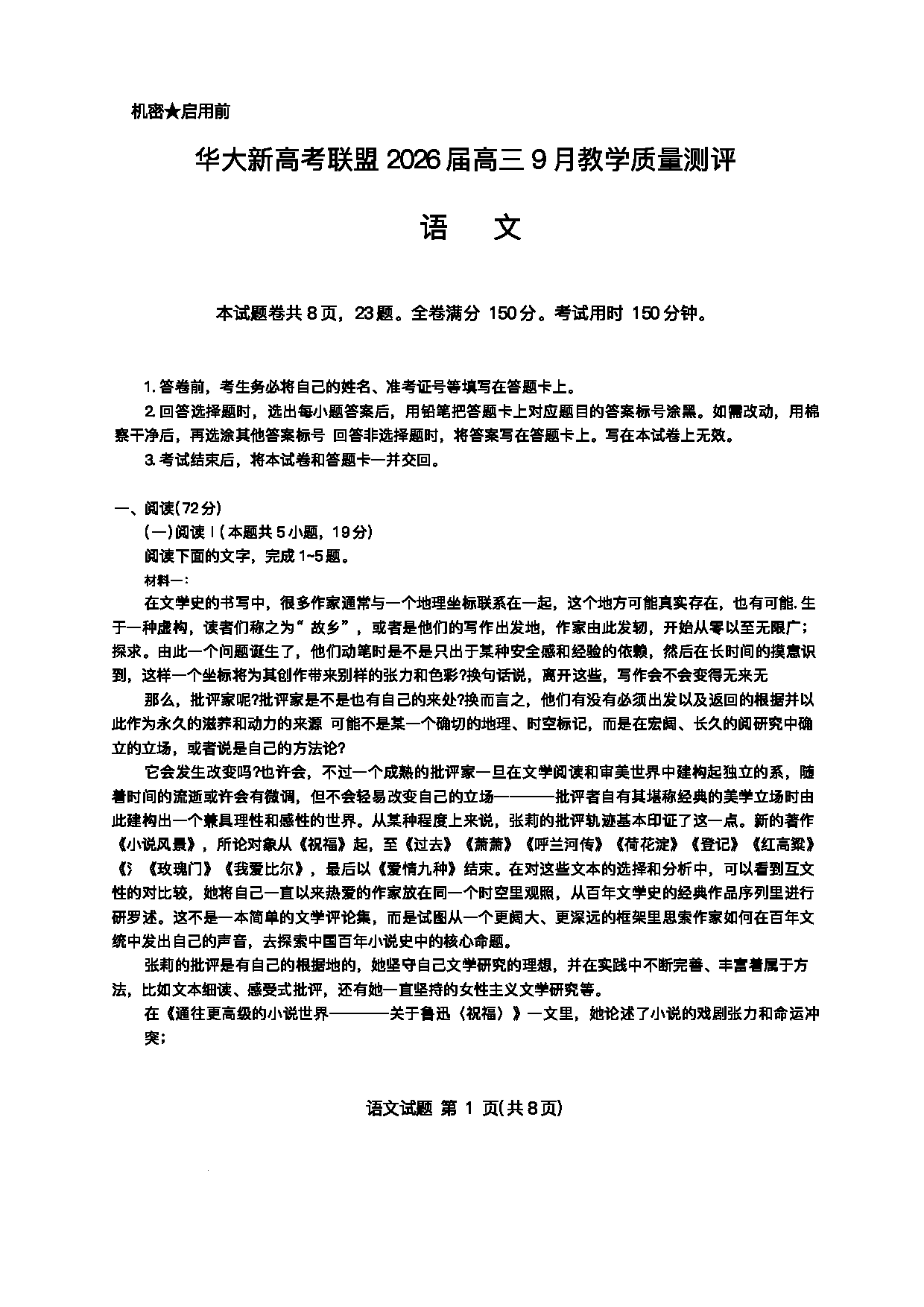 华大新高考联盟2026届高三9月教学质量测评语文试题及答案