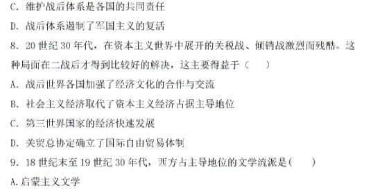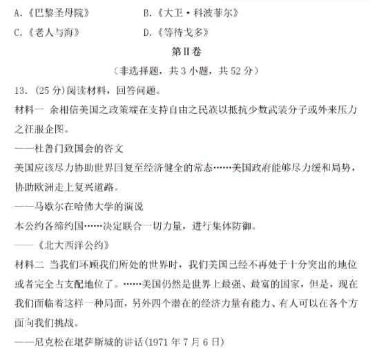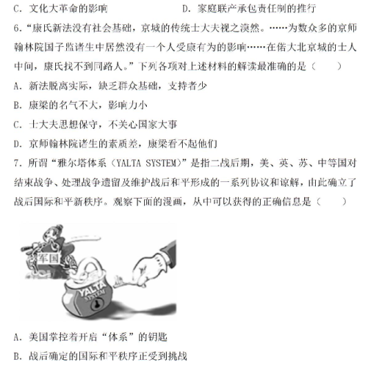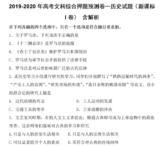 2020年全国高考文综押题预测历史试题