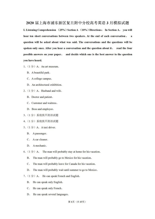 2020年上海市高考英语3月模拟试题(含答案) 时间:2020-05-31 10:59 英语试题 球速在线官网 | 乐动官方网页版 | 拼搏在线平台(中国)官网 | 易游手机站·官方版在线 | 米乐手机站·官方版在线 | 万搏线上平台 | 球友会·体育 | IM官方网页版 | 千亿手机站·官方版在线 |