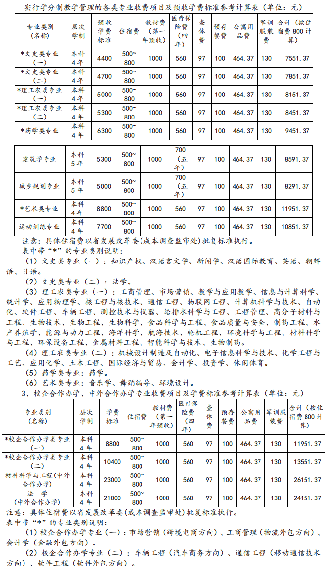 学费依据来源:2019级新生入学须知(https://bkzs.ytu.edu.cn/info/1042/1709.htm)