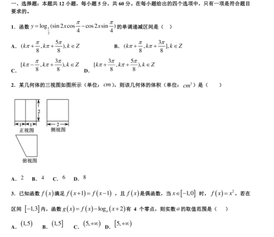 2022年高考全国乙卷数学(文)试卷真题与答案解析