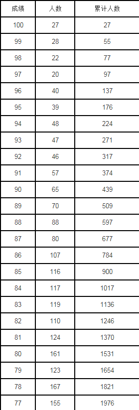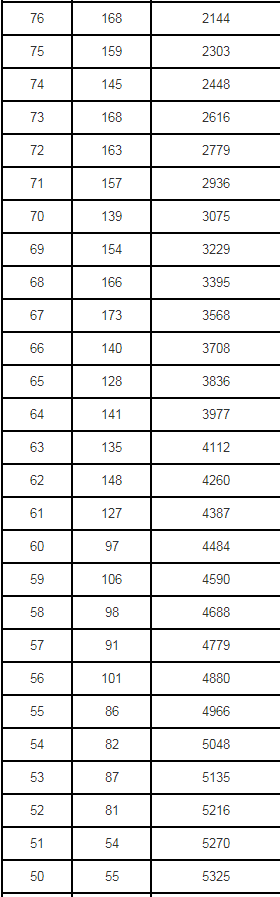 辽宁省2020年普通高校体育专业招生考试成绩一分一段表