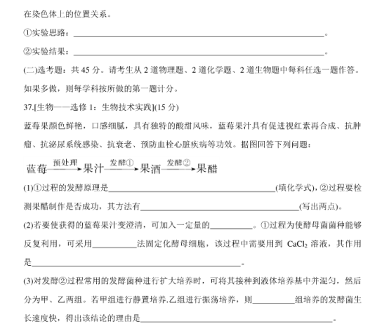 2022年高考全国乙卷理综真题及答案解析(完整版)