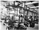 南京云锦色泽光丽灿烂,用料考究,其木机妆花手工织造技艺依靠口传心授、代代相传,至今不易被现代机器替代。20世纪初,云锦工艺面临后继无人的局面。2009年木机妆花手工织造技艺入选联合国《人类非物质文化遗产代表作名录》。云锦工艺得到了较好的传承。右图为木机妆花手工织造场景图。据此完成1~3题。