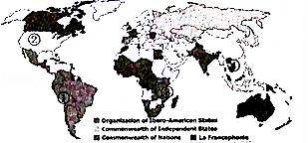 9 .下面是 17 世纪世界殖民地分布示意图,以下对图中数字代表地区的宗主国的表述,正确的是( )