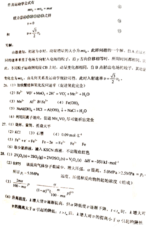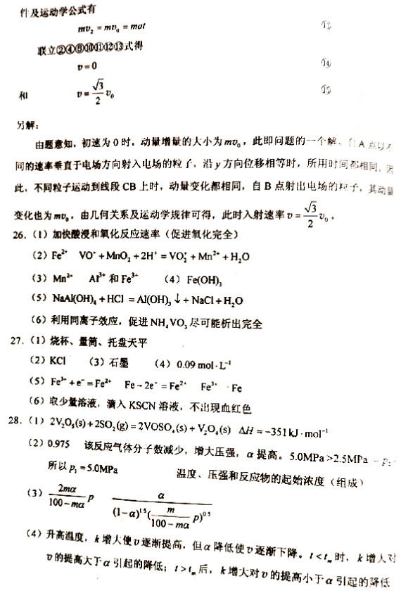 2020湖北高考理综试题及答案解析