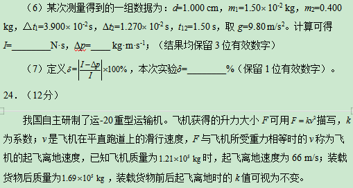 (5)在遮光片随滑块从A运动到B的过程中,如果将砝码和砝码盘所受重力视为滑块所受拉力,拉力冲量的大小I=________,滑块动量改变量的大小Δp=________;(用题中给出的物理量及重力加速度g表示)