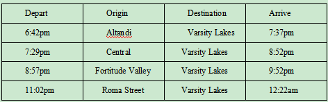 While Queensland Rail makes every effort to ensure trains run as scheduled,there can be no guarantee of connections between trains or between train services and bus services.