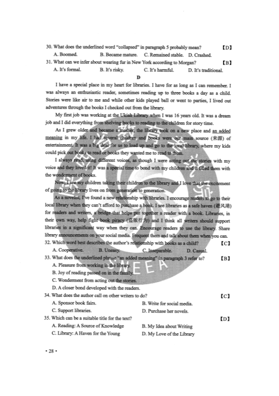 2020全国2卷高考英语试题及答案解析【word精校版】