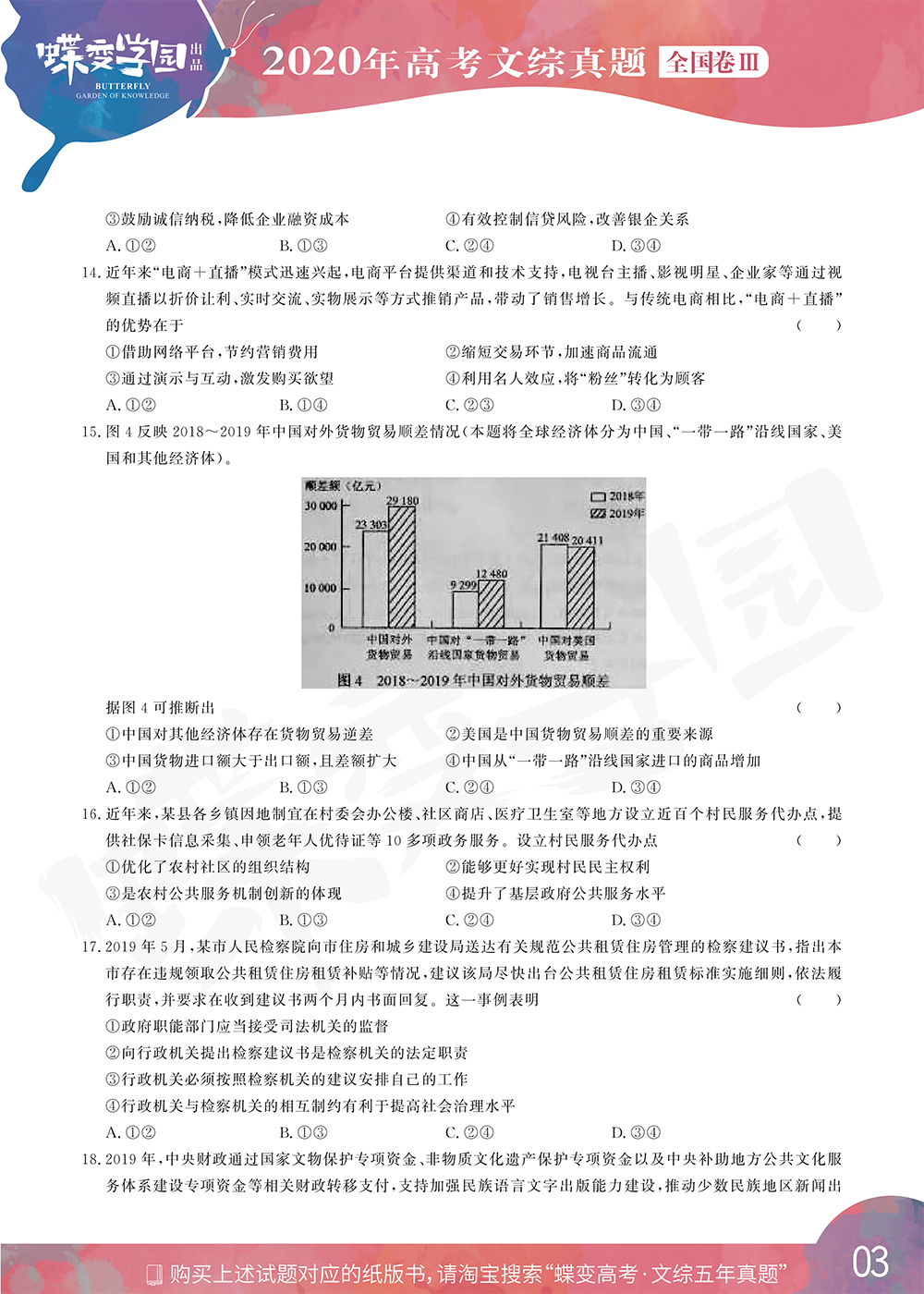 2020年全国3卷高考文综真题试卷【高清精校版】 时间:2020-07-10 11:18 文综试题 本文档整理了【高清精校版】2020年全国3卷高考文综真题。点击文末的下载,可下载PDF格式的文件,便于打印和存储。