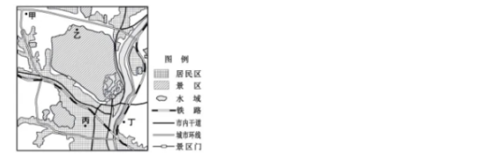 2020年5月以来,许多城市鼓励发展地摊经济。规范化管理下的地摊经济让生活“烟火气”更加浓郁。下图为某城市局部空间结构示意图。完成1、2题。