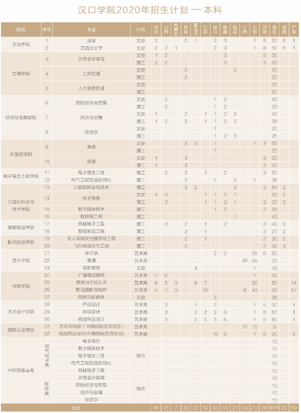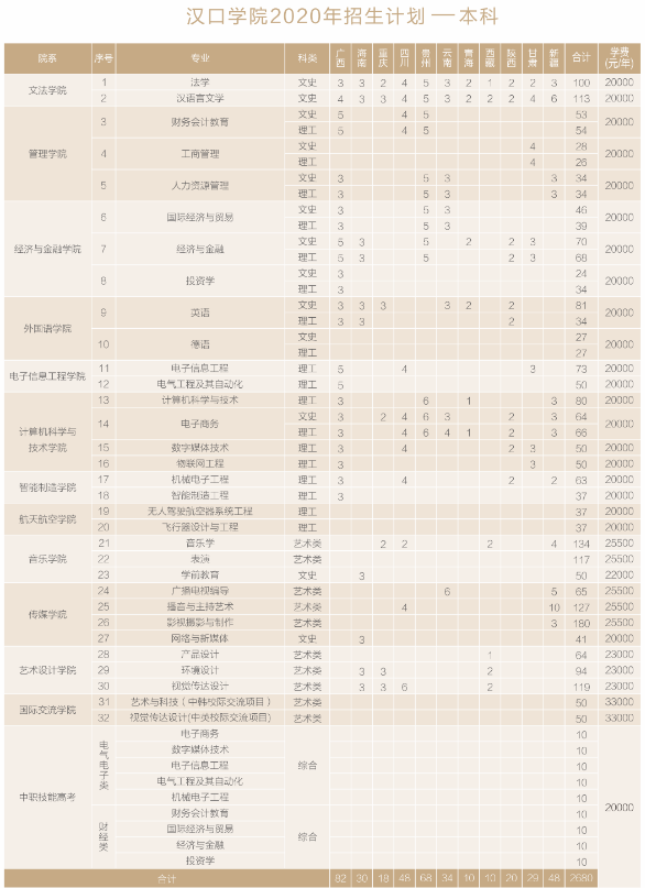 高校招生计划是考生填报志愿时的一个重要依据,下面小编整理了汉口学院2020年的招生计划,供大家参考!