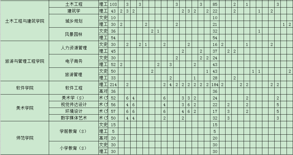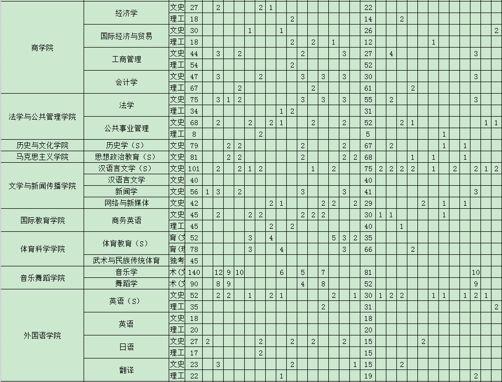 注:1.专业名称后标注(S)的为师范类专业;2.浙江、山东、天津、海南招生类别均为综合改革试类,江苏省招生类别均为文理综合,艺术专业招生类别一般为文理兼招(湖南、福建、广西限招艺术文);3.在湖南省招收职高对口考生:软件工程专业招收计算机类考生36人,学前教育专业招收师范类考生20人;4.具体执行计划以生源省计划部门公布的为准。